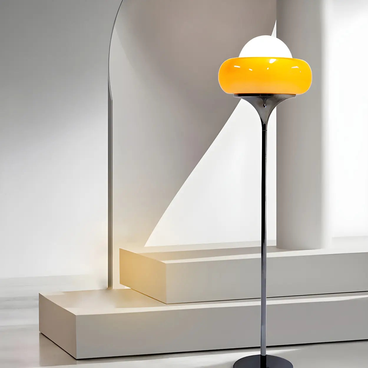Retro LED Glass and Metal Yellow Egg Tart Floor Lamp